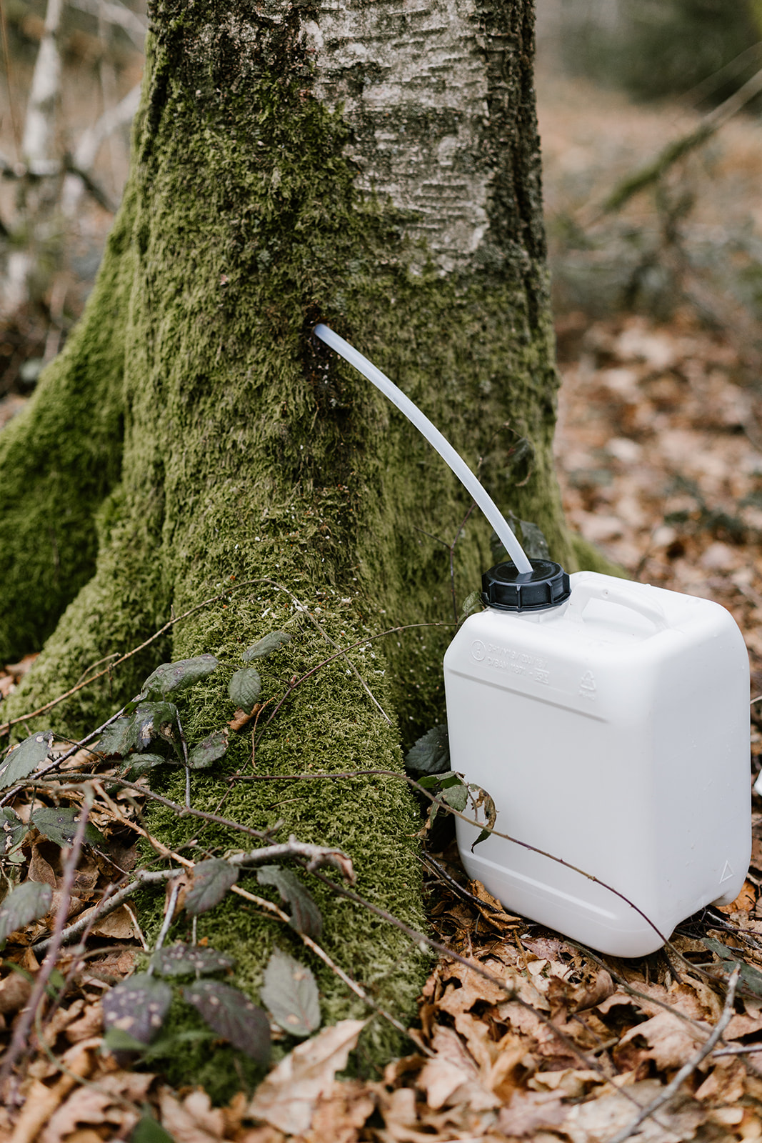 La sève de bouleau ne se récolte pas toute l’année. Elle apparaît pendant une courte période, lorsque l’arbre se réveille et fait remonter l’eau végétale de ses racines vers ses bourgeons.
